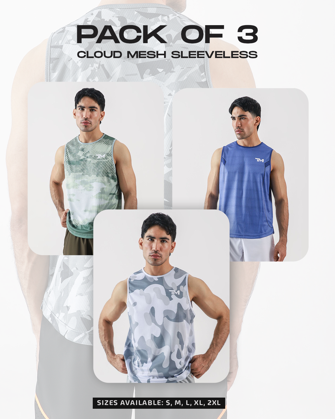 PACK OF 3 CLOUD MESH SLEEVELESS